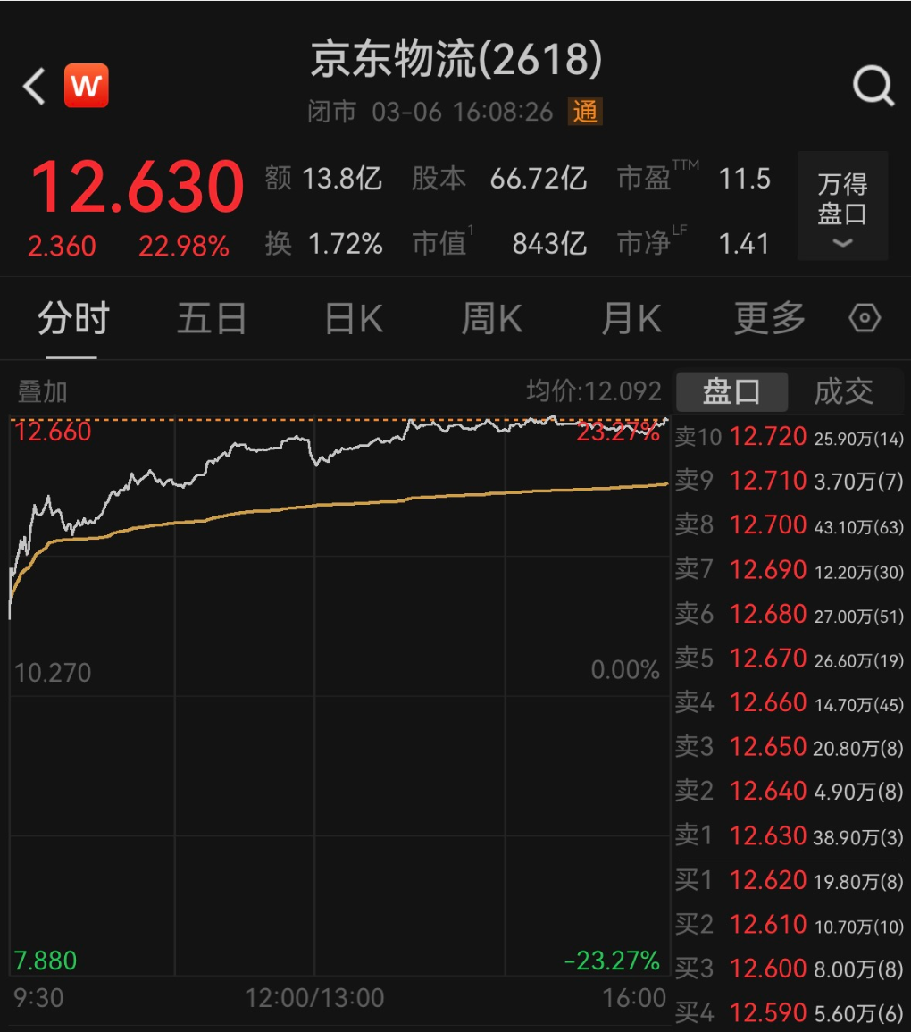 此外,“京东系”的京东物流大涨超20%。